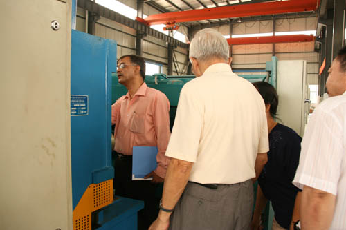 在公司領(lǐng)導(dǎo)的陪同下,PRAKASH先生參觀了公司的成品車間和生產(chǎn)車間,對(duì)我公司的生產(chǎn)及研發(fā)能力表示出極大的贊賞。我公司智能化的辦公和流水線系統(tǒng)吸引了PRAKASH先生一行。在操作人員的協(xié)作下,有著二十多年從業(yè)經(jīng)驗(yàn)的PRAKASH先生對(duì)我公司的QC11Y大型機(jī)床進(jìn)行了細(xì)致入微的考察,而我公司的機(jī)床也以其過(guò)硬的品質(zhì)和精密的設(shè)計(jì)贏得了PRAKASH先生的好評(píng)。